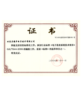5. 蘭德華公司被列為《電子巡查國(guó)家行業(yè)標(biāo)準(zhǔn)》起草單位,公司主創(chuàng)人員王兵、張韶虞作為專家起草人之一